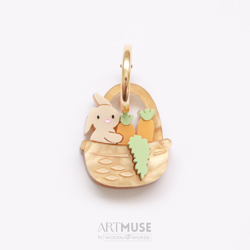 Bunny Carrot Basket Charm - Brown