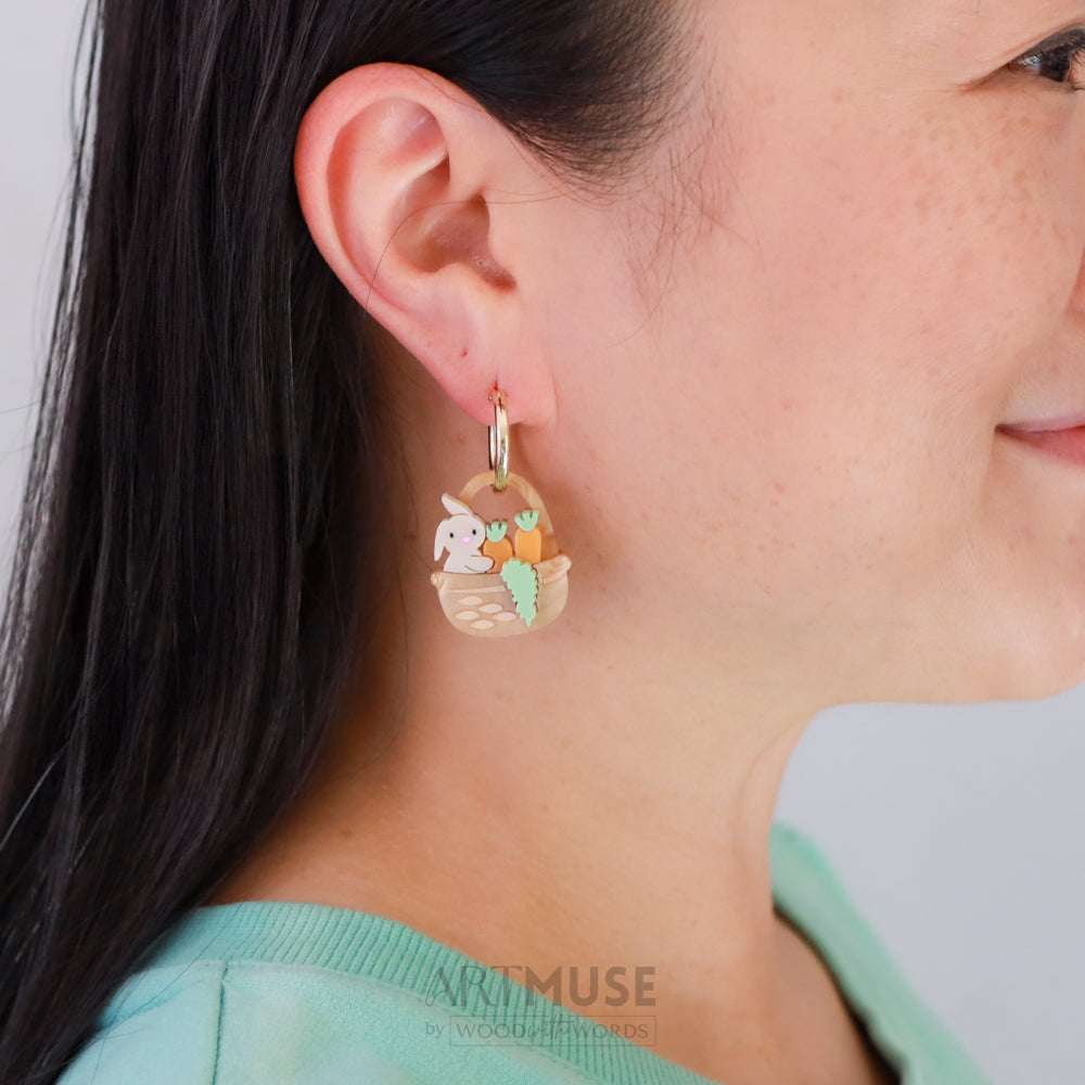 Bunny Carrot Basket Earring Charm - Brown