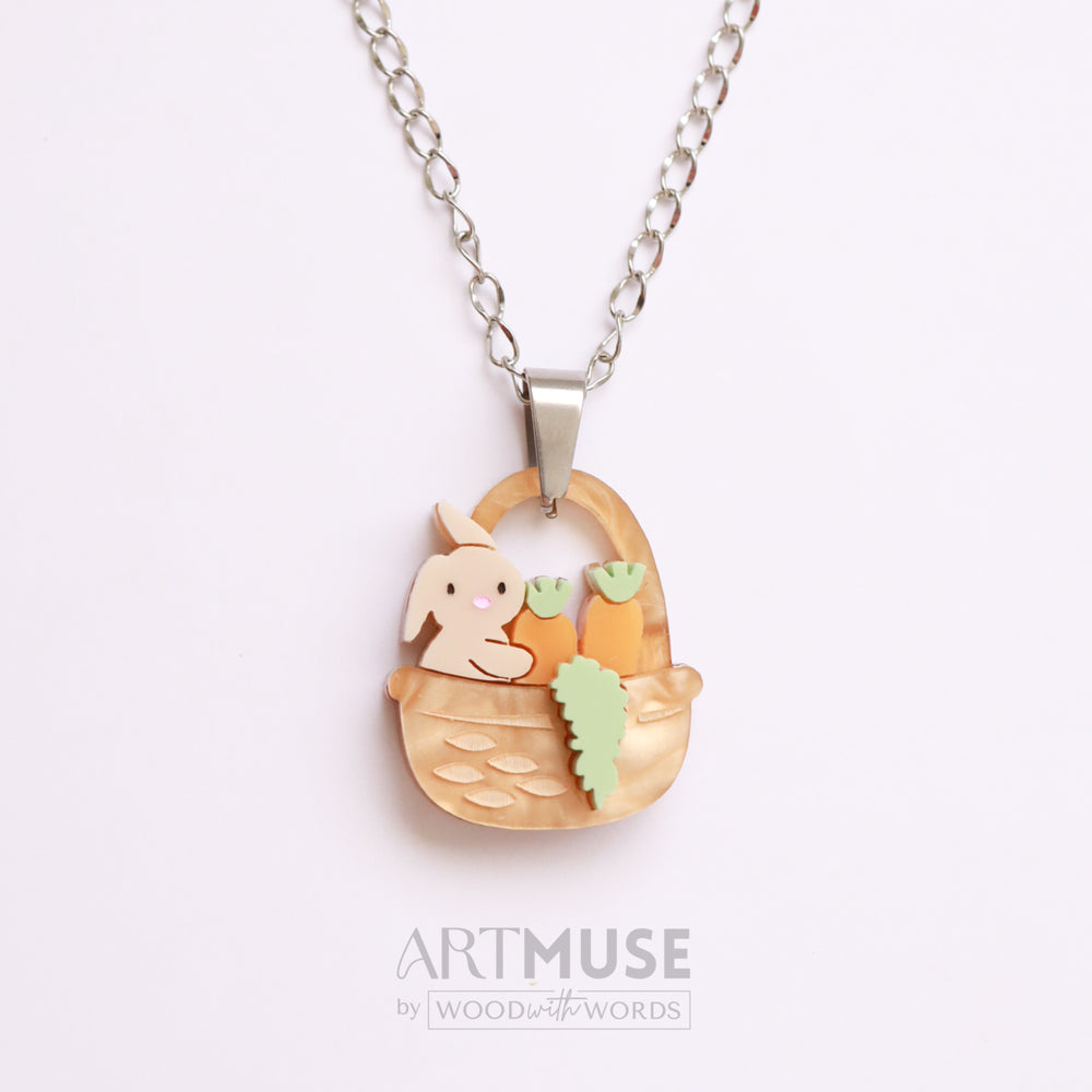 Bunny Carrot Basket Necklace Pendant